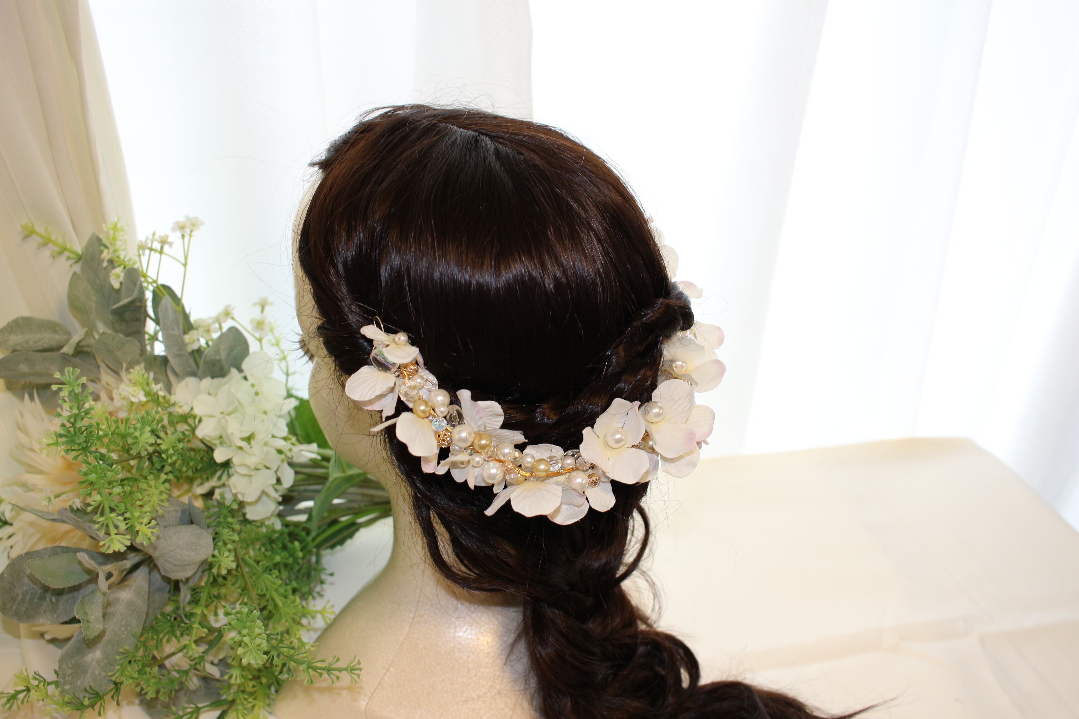 ホワイトフラワーをゴールドパールで華やかさを出しています。